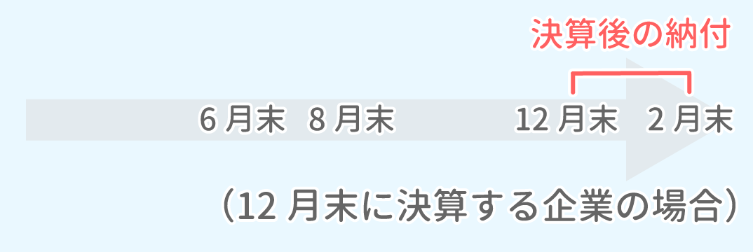この制度によって、 会社にとっては、事業年度の間に一度支払っておけば、期末にまとめて支払うより資金繰りのめどがつく場合がありますし、 国や地方自治体にとっても、安定的な税収の確保ができるというわけです。