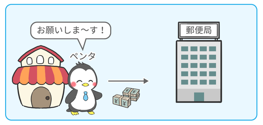 郵便切手1,200円分を郵便局で購入し、代金は現金で支払った。